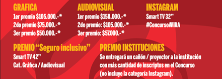 Se dividen en tres: Gráfica, Audiovisual e Instagram, a la vez que se suma un premio adicional: “Seguro Inclusivo” que apunta promover la adquisición de coberturas accesibles en costo y de fácil comprensión entre personas de bajos ingresos.
