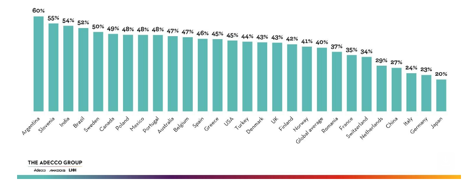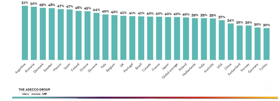 Los datos surgen de la investigación realizada por el Grupo Adecco “2024 Global Workforce of the Future”, donde se encuestó a 35.000 trabajadores de todo el mundo, incluyendo a 1.000 argentinos.