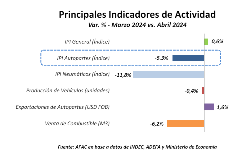 El sector autopartista presentó durante el primer cuatrimestre de 2024 una caída en su nivel de actividad de ‐3,4% respecto al mismo periodo de 2023.