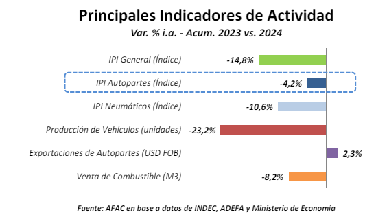 El sector autopartista presentó durante el primer trimestre de 2024 una caída en su nivel de actividad de ‐4,2% respecto al mismo periodo de 2023.