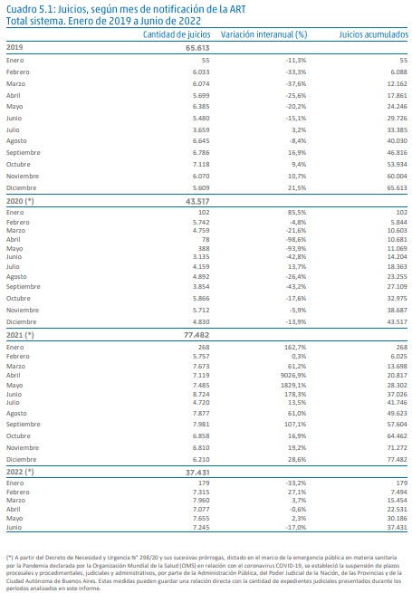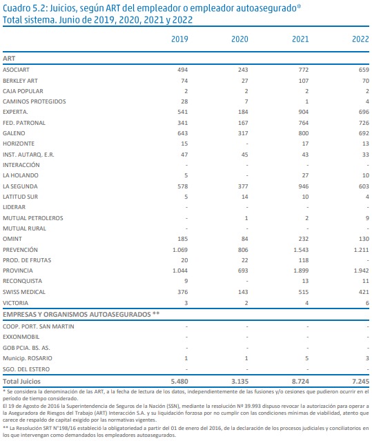 En Junio de 2022, el Sistema de Riesgos del Trabajo registraba un total de 1.619.150 empleadores asegurados con al menos un trabajador declarado