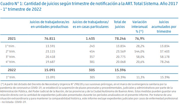 La Superintendencia de Riesgos del Trabajo publicó la información correspondiente al 1er. trimestre del 2022 de su “Informe trimestral de litigiosidad del Sistema de Riesgos del Trabajo”.