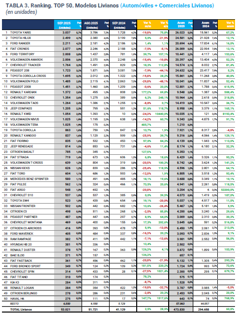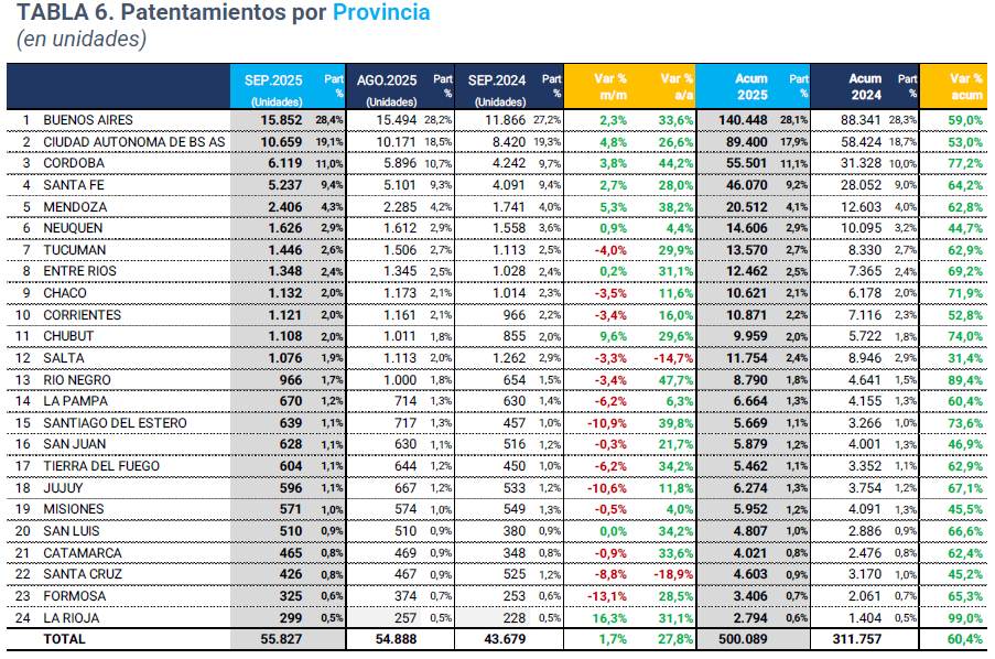 Acceda al informe completo aquí: patentamientos autos Septiembre 2025.pdf
