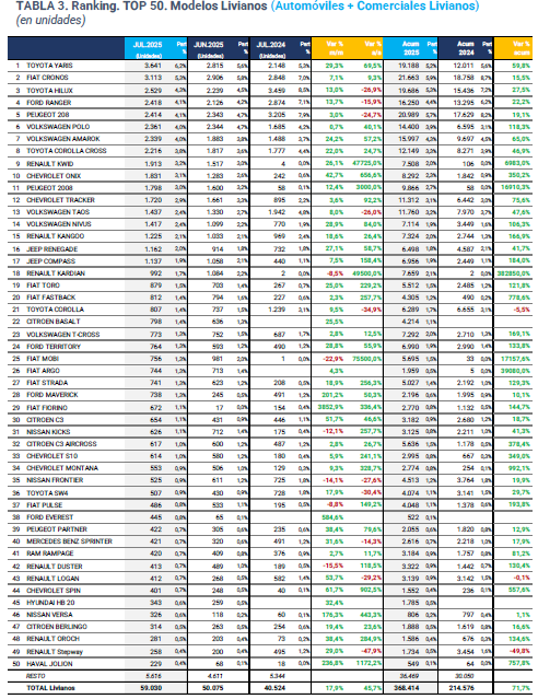 Acceda al informe completo aquí: patentamientos autos julio 2025.pdf