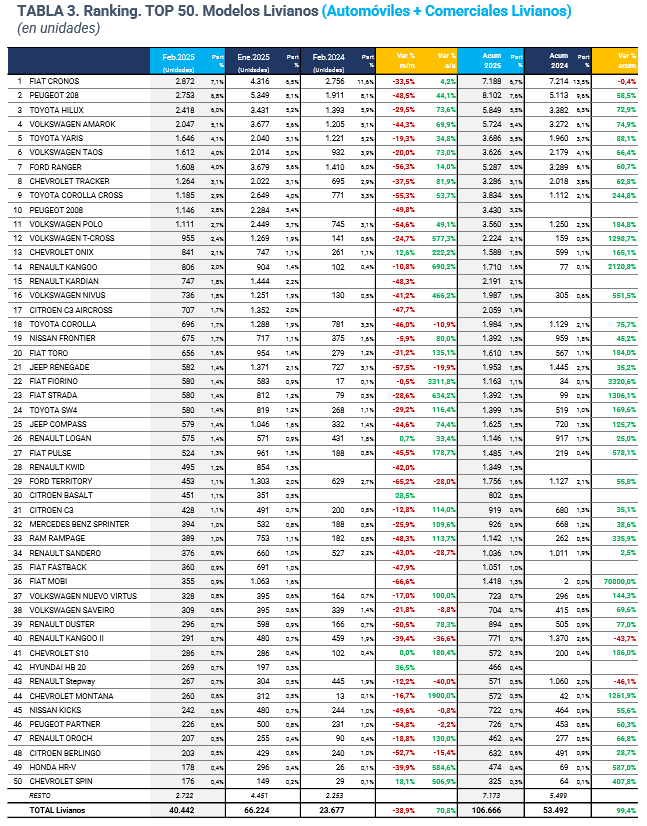 Acceda al informe completo aquí: patentamientos autos febrero 2025.pdf