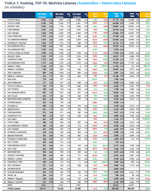 Acceda al informe completo aquí: patentamientos autos Octubre 2025.pdf