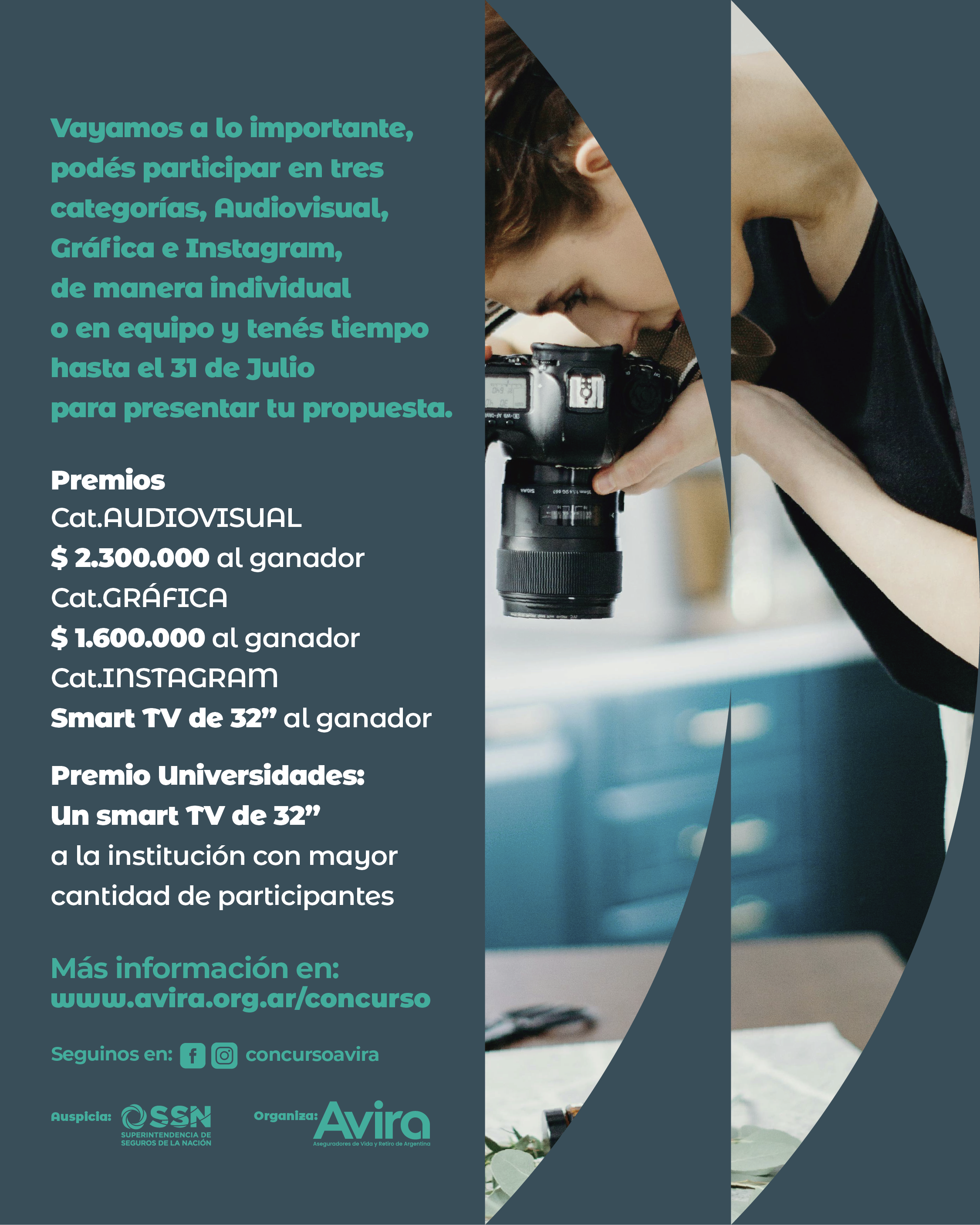 Avira anuncia la 11° edición de su Concurso de Creatividad “Generando Conciencia Aseguradora”, iniciativa que tiene como objetivo visibilizar el valor de contar con seguros de vida y retiro como herramientas clave para la protección financiera. Con más de $4.500.000 en premios, el certamen tiene alcance nacional y todos pueden participar. Enterate de más en www.avira.org.ar/concurso