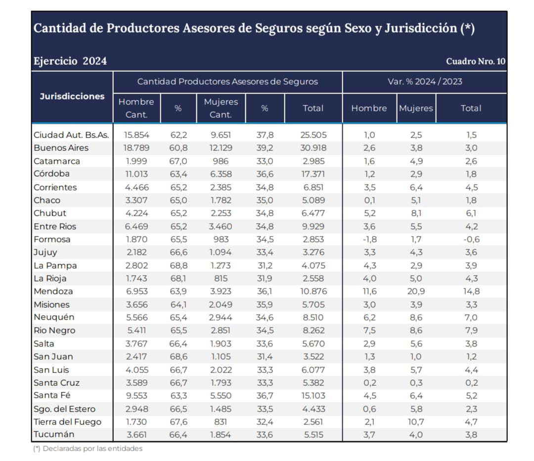 Si bien la mayoría de los Productores Asesores son hombres, es importante destacar que el crecimiento de la presencia femenina en el sector fue superior en la mayoría de las jurisdicciones. La jurisdicción con mayor presencia de la mujer sigue siendo la Provincia de Buenos Aires (39,2%), seguida por C.A.B.A. (37,8%)