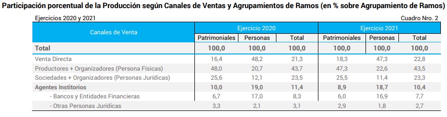 La Superintendencia de Seguros de la Nación publicó el informe relativo a los "Canales de venta de las entidades aseguradoras", correspondiente al Ejercicio Económico 2021, donde se presenta un análisis de los diferentes intermediarios en comercialización que poseen las aseguradoras.