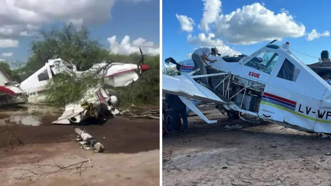En Añatuya una avioneta cayó al patio de una casa. Increíblemente, el piloto no sufrió lesiones...