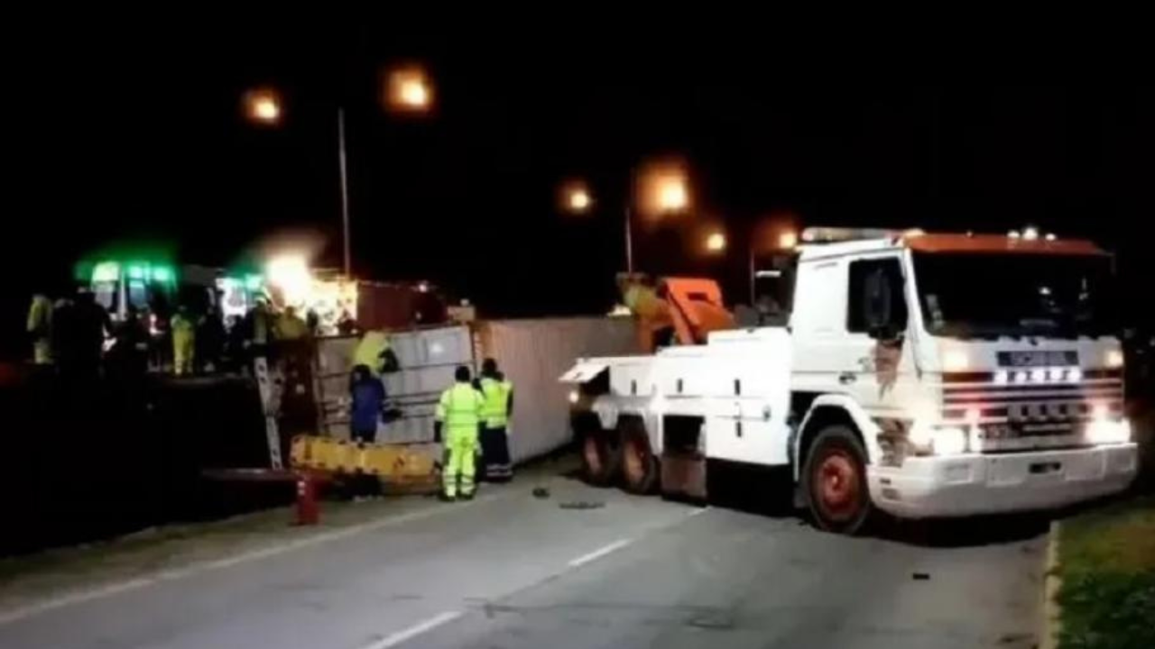Un camión volcó y cayó encima de un auto. 2 muertos
