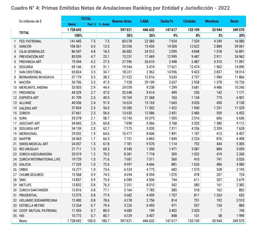 La Superintendencia de Seguros de la Nación (SSN) informó al mercado mediante la Circular l IF-2023-53089349-APN-GEYE#SSN la información estadística correspondiente a la DISTRIBUCIÓN GEOGRÁFICA DE LA PRODUCCIÓN correspondiente al Ejercicio Económico 2021-2022. En la misma se presentan las primas emitidas del período, desagregadas por entidades, ramos y jurisdicción geográfica.