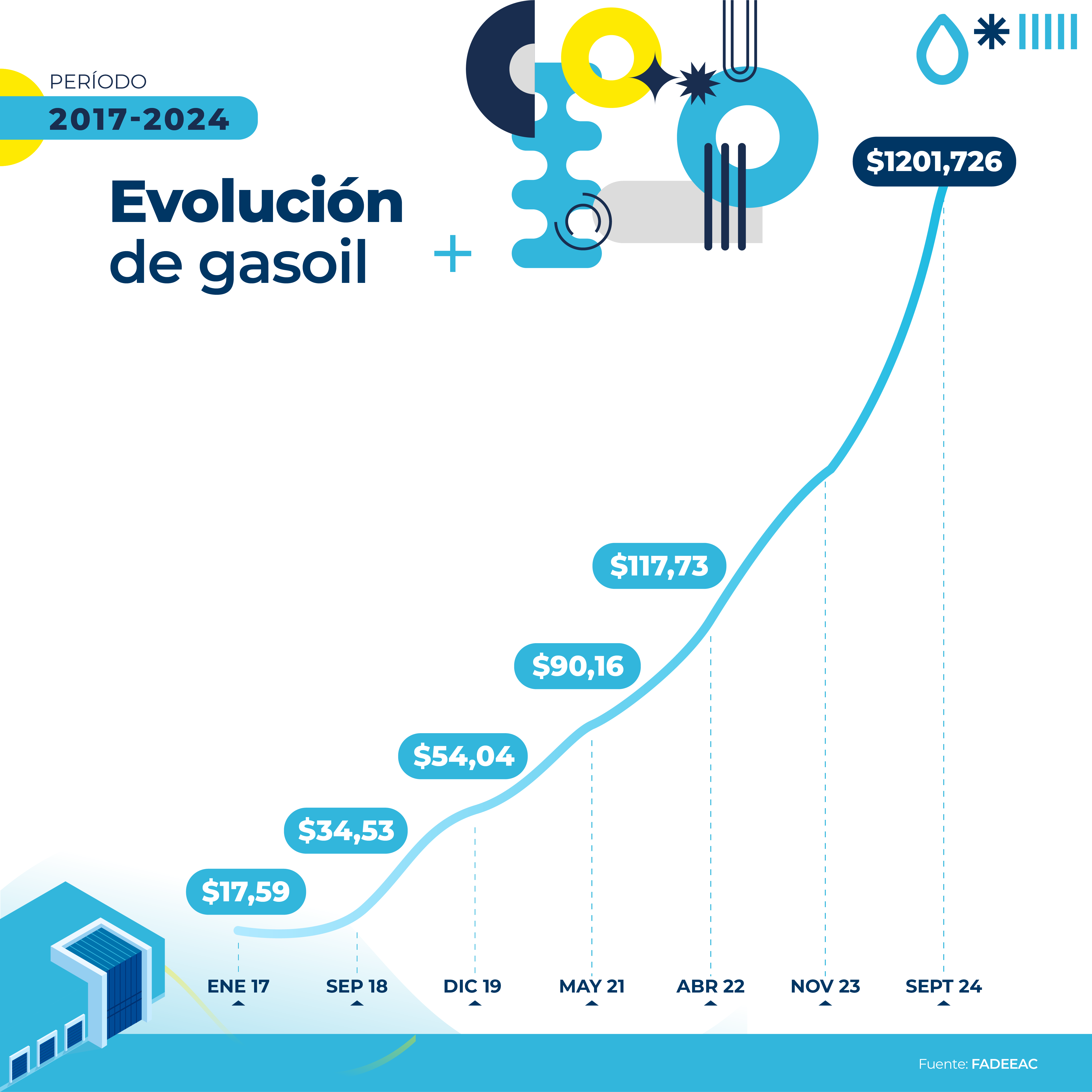 Adicionalmente al contexto recesivo de la actividad, los menores incrementos en los últimos cinco meses (2,45% en mayo, 4,66% en junio, 4,23% en julio y 3,28% en agosto), están relacionados con los continuos diferimientos en la aplicación de los impuestos específicos a los Combustibles, decisión que volvió a moderar mayores incrementos en el gasoil, el insumo más gravitante en los costos de la actividad.