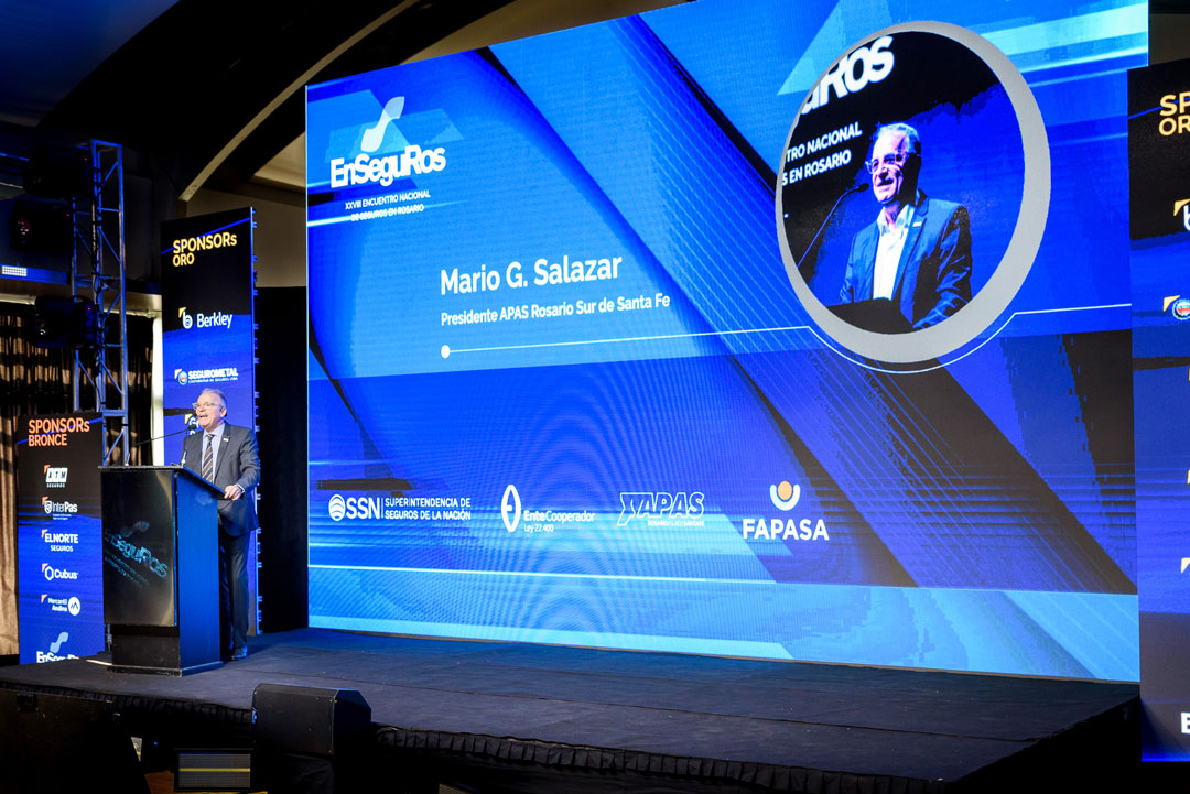 Mario Salazar, presidente de APAS Rosario y Sur de Santa Fe, en la apertura de EnSeguRos.