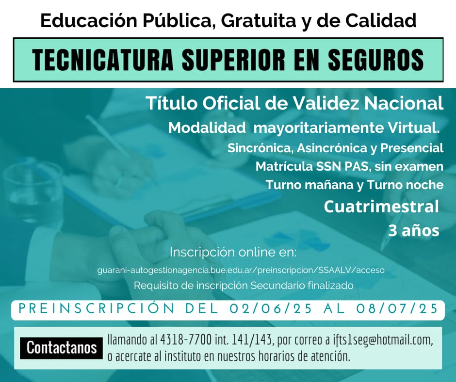 Para más información, los interesados pueden ingresar al sitio web del instituto o escribir a ifts1seg@hotmail.com.ar.