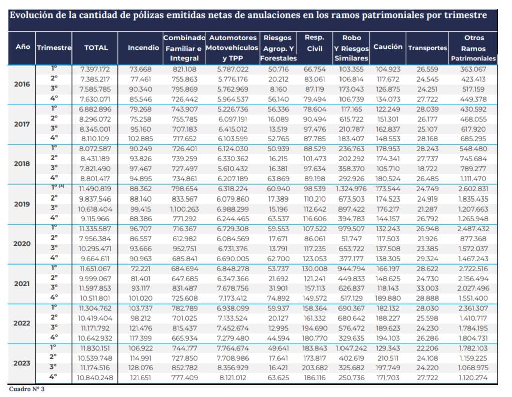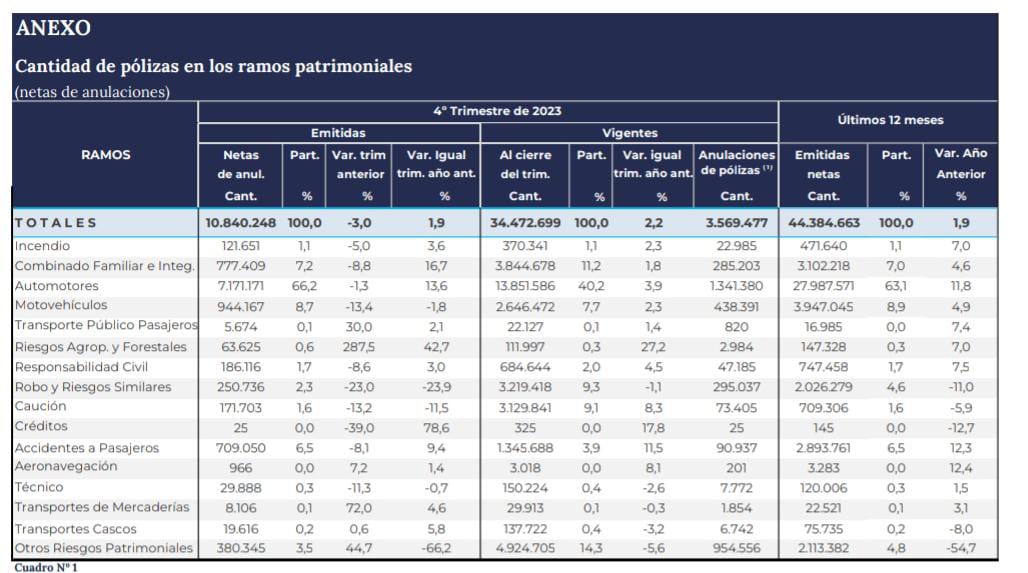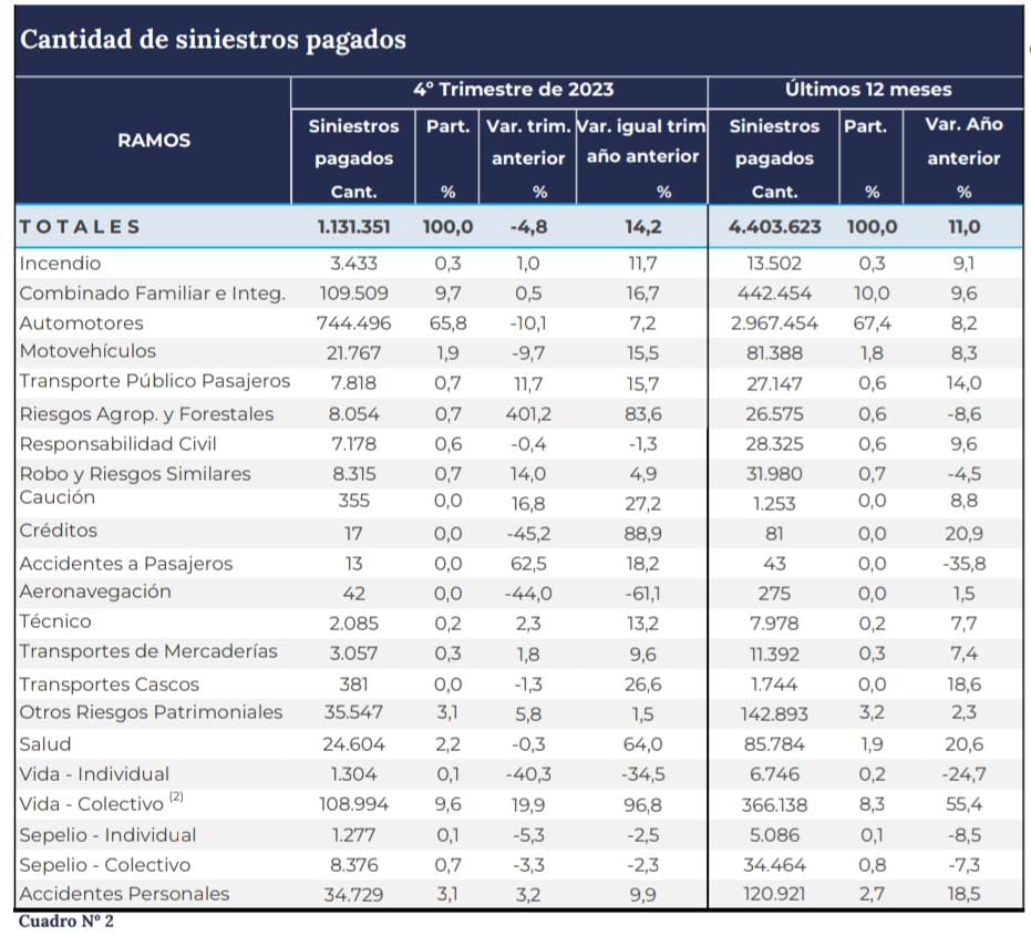 El informe correspondiente al 4º trimestre de 2023 (octubre/diciembre) se elaboró en función de los datos que las entidades aseguradoras informan