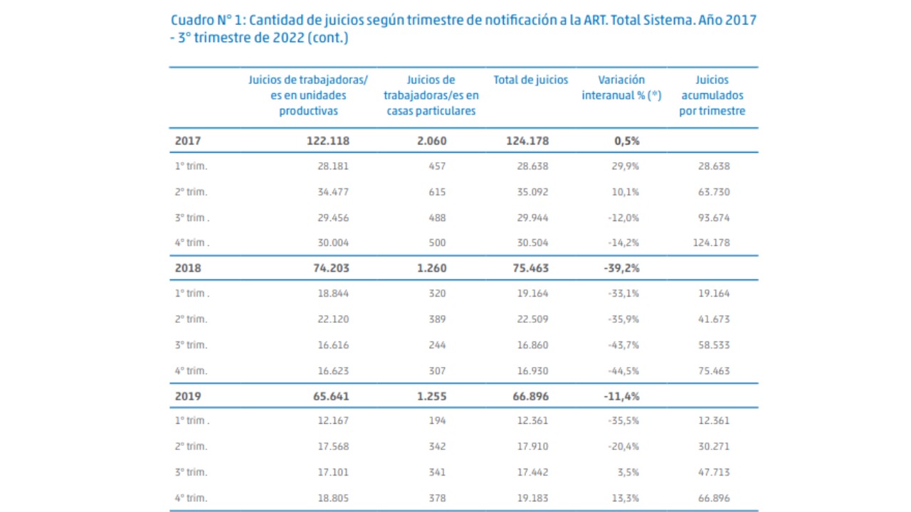 La SUPERINTENDENCIA DE RIESGOS DEL TRABAJO (SRT) publicó el INFORME DE LITIGIOSIDAD DEL SISTEMA DE RIESGOS DEL TRABAJO correspondiente al 3er. trimestre de 2022.