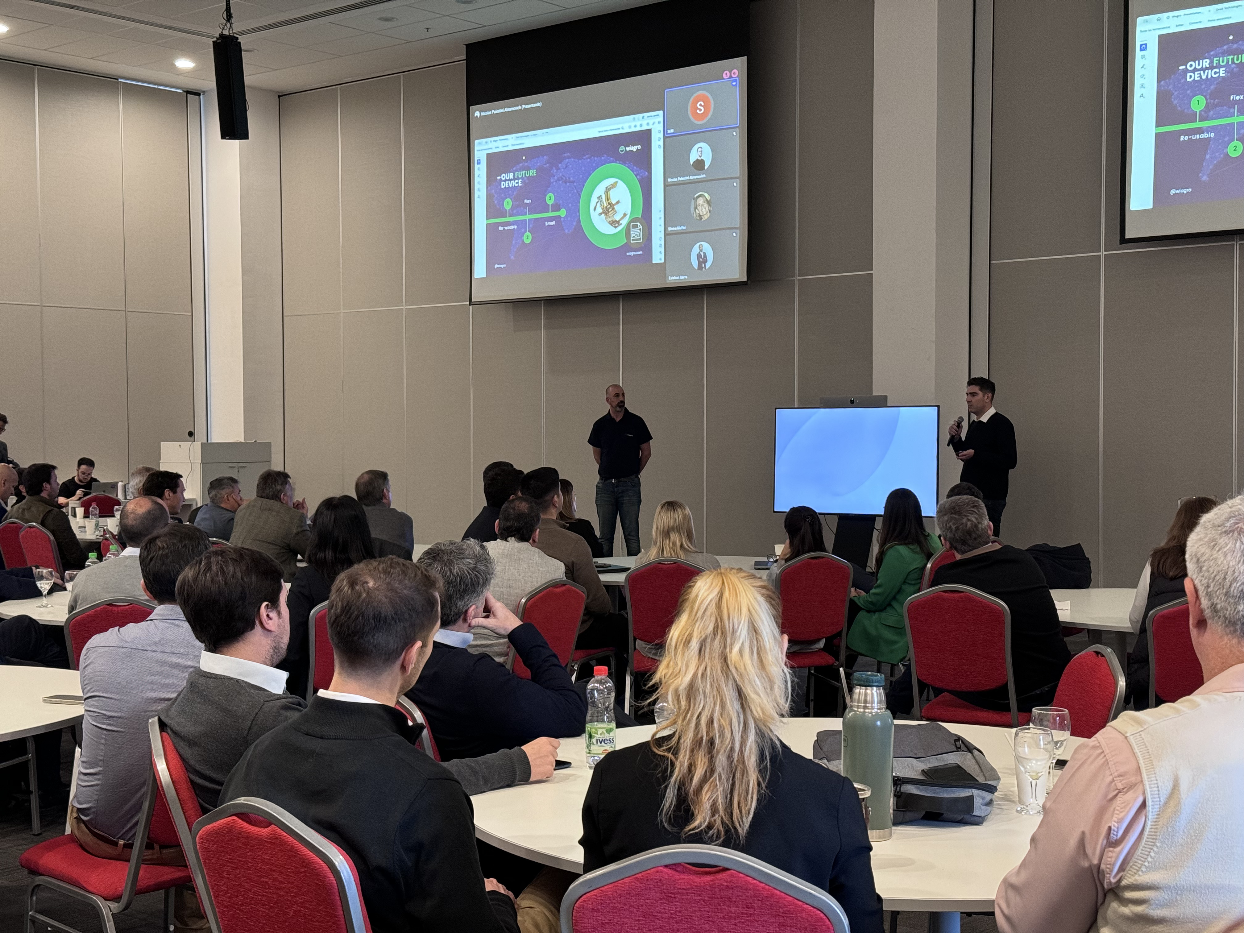 Otro caso interesante que estuvo presente este miércoles es el de Wiagro, quienes trabajaron con la unidad de negocios de agro de La Segunda. Lo que propusieron es una plataforma que permite “que el productor que toma un seguro, por ejemplo para un silo bolsa, además de monitorear el estado de su cosecha, pueda prevenir que esos granos se deterioren bajando el riesgo de la póliza”, explica Martín Cordasco, cofundador de Wiagro.