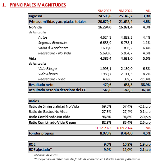 El resultado neto alcanza los 283 millones, de los cuales España y Portugal aportan 273 y 10,9 millones, respectivamente. De ellos, 34,9 millones corresponden a plusvalías netas realizadas (9,9 millones en 2023), después de impuestos y minoritarios. En 2023, el resultado neto incluía un impacto positivo de 46,5 millones como consecuencia del arbitraje por la ruptura de la alianza con Bankia. Sin tener en cuenta las plusvalías netas y el arbitraje, el crecimiento del beneficio hubiera sido más del 30%.