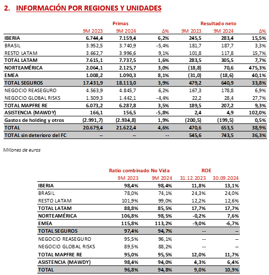 - NORTEAMÉRICA registra un importante aumento del resultado (+89,4 millones de euros), consolidando las mejoras técnicas adoptadas.