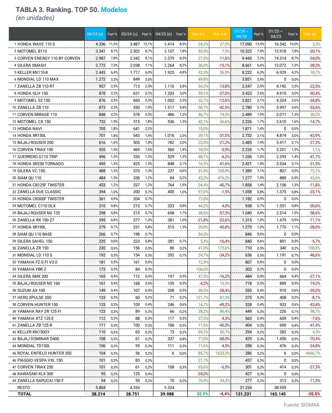 Acceda al informe completo aquí : patentamientos motos abril 2024.pdf