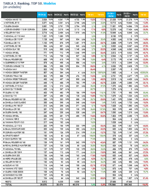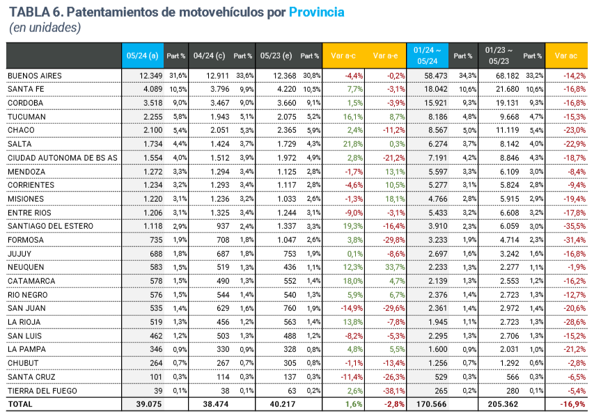 Acceda al informe completo aquí : patentamientos motos mayo 2024.pdf