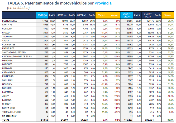 Acceda al informe completo aquí: patentamientos motos agosto 2025.pdf