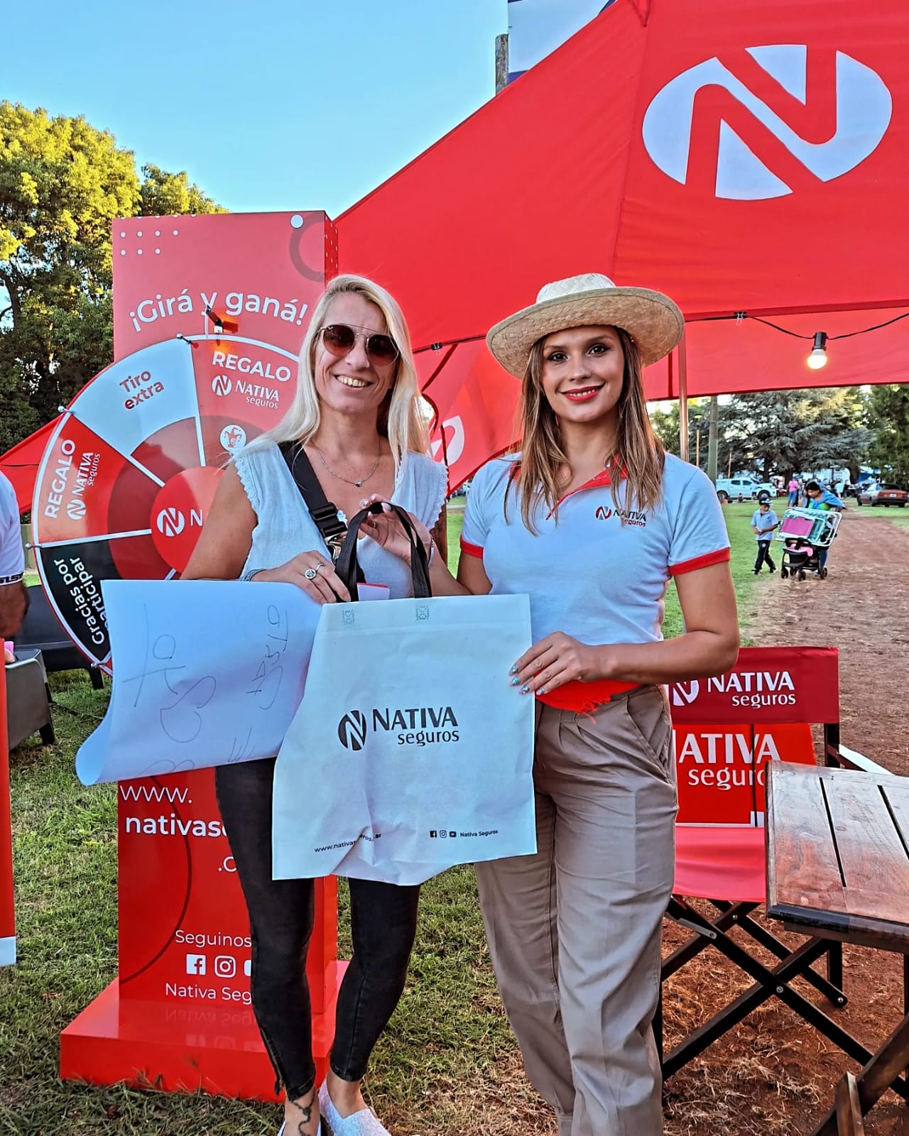 El stand de Nativa Seguros atrajo al público entregando merchandising de la marca, importantes premios, entrega de pancartas en el escenario y brindó asesoramiento comercial sobre productos de la compañía.