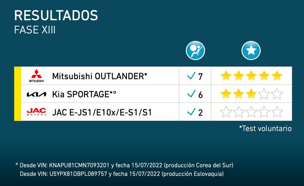 La sexta y última publicación del año 2022 del Programa de Evaluación de Vehículos Nuevos para América Latina y el Caribe, Latin NCAP, muestra un resultado preocupante de cero estrellas para el JAC E10X, tres estrellas mejorables para el Kia New Sportage y cinco estrellas para el Mitsubishi Outlander.