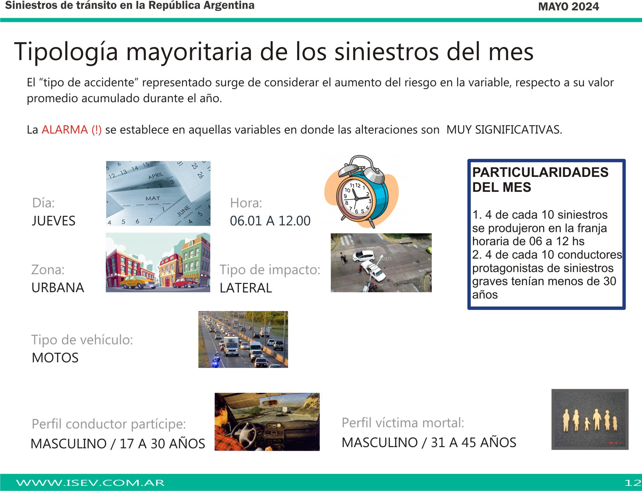 Aumento en siniestralidad y morbilidad vial, descensos en mortalidad respecto a Mayo de 2023. La siniestralidad aumentó un 23.27%. La mortalidad descendió a un 16.59%.