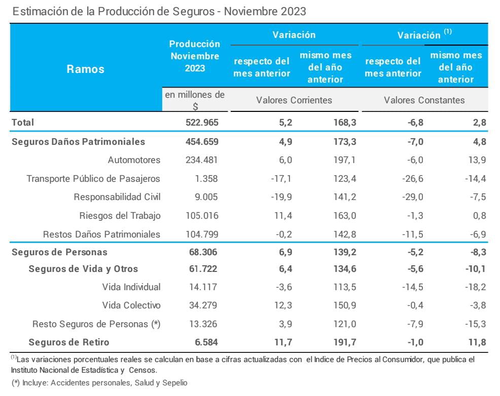 La Superintendencia de Seguros de la Nación publicó la información correspondiente a la producción mensual al mes de noviembre 2023.