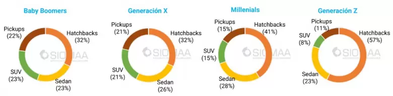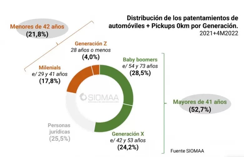 La generación Z se incorpora paulatinamente, impulsado por la edad y los ingresos, que les permiten acceder a la compra de un auto. Hoy representa menos del 5 %.