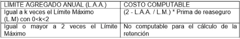 Para el caso de contratos de reaseguro de Exceso de Pérdida por Riesgo y/o Evento, la retención debe calcularse como la prioridad del asegurador en caso de siniestro del contrato analizado, con el agregado del costo de reposición de cobertura de cada tramo afectado por un siniestro supuesto igual a la Pérdida Máxima Probable del caso considerado. Dicho costo adicional se calcula de acuerdo al siguiente detalle: