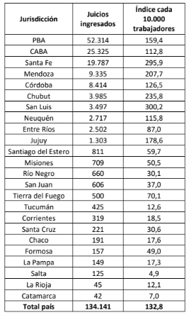 Además, el 73% de la litigiosidad se concentra en tres provincias: PBA, CABA y Santa Fe, generando una profunda afectación de la competitividad laboral dentro del país.