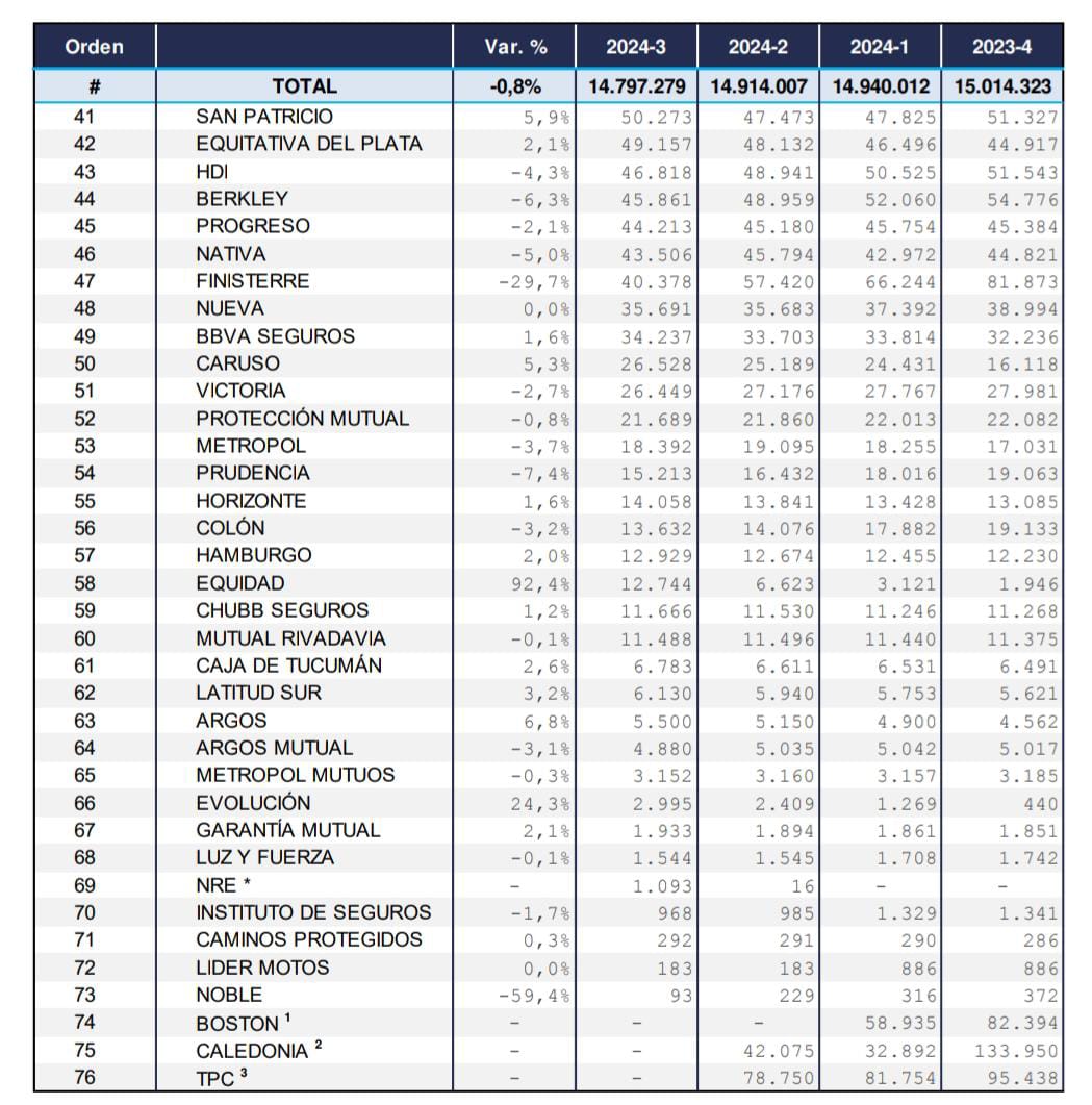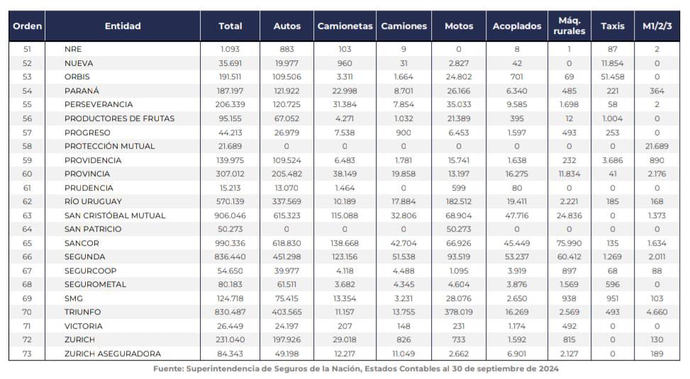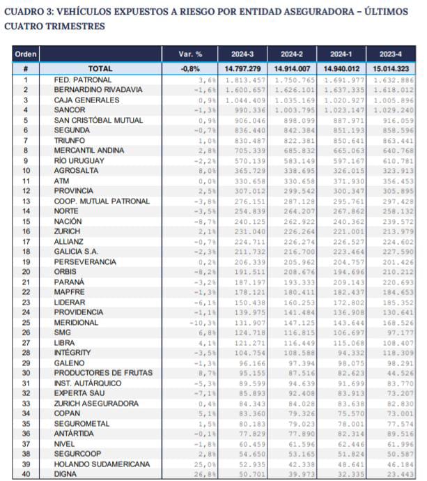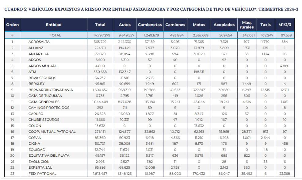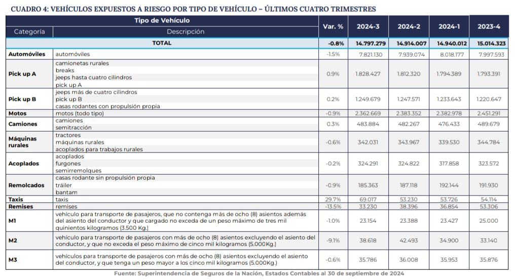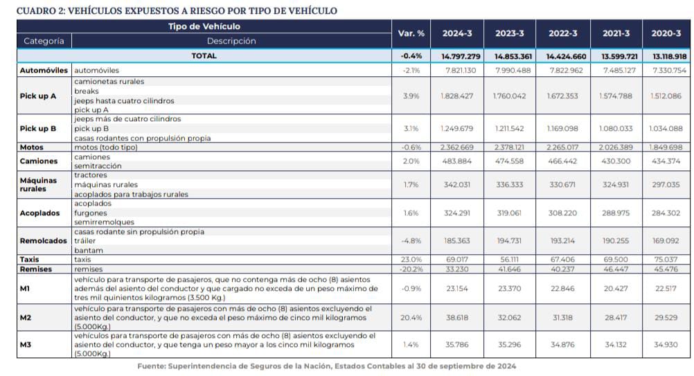 La Superintendencia de Seguros de la Nación a través de la Circular Informativa IF-2024-140521080-APN-GEYE#SSN de fecha 23 de diciembre de 2024 publicó los Vehículos Expuestos a Riesgo al 30 de Setiembre de 2024